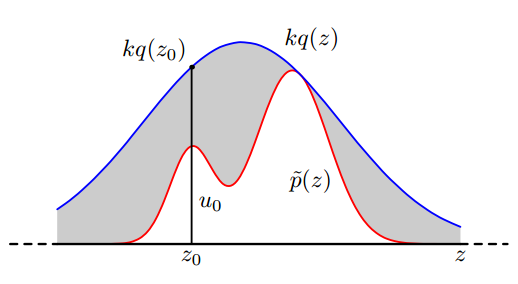 $p(z)=\widehat{p}(z)/Z$是目标分布,$q(z)$是基准分布,它们满足$\widehat{p}(z) \leq kq(z)$。